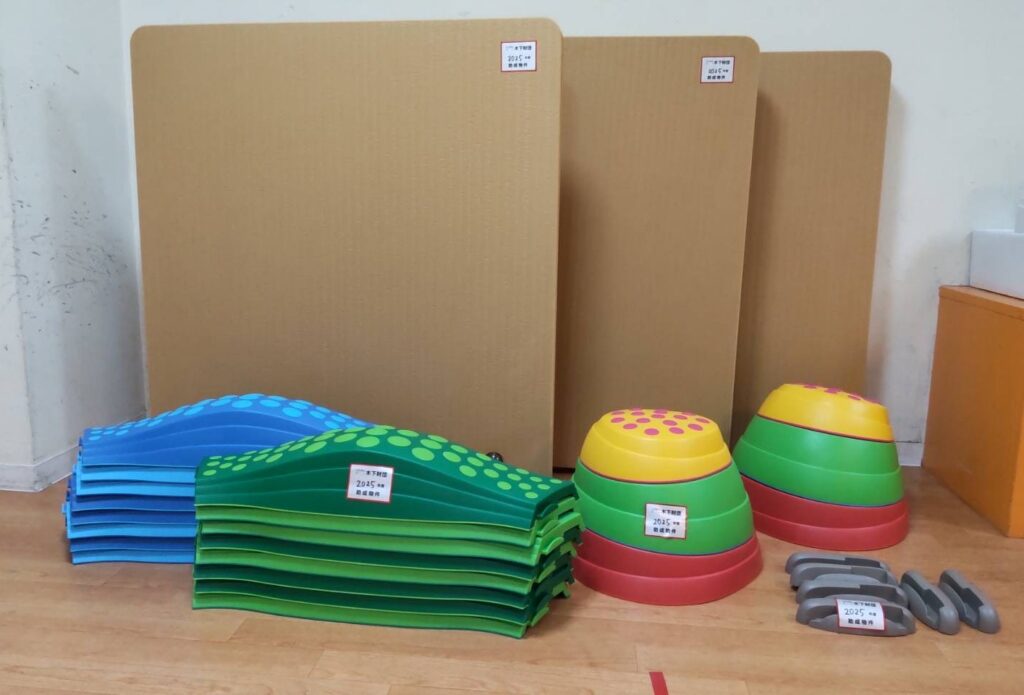 令和7年度に助成いたしました、IamOK様よりレインボーバランスストーン・ウェイブバランス平均台セットと